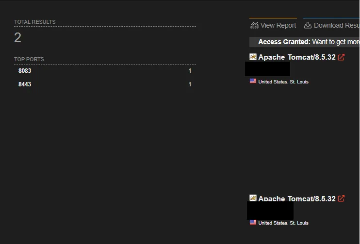 Потратив некоторое время, я нашел интересный актив для начала взлома. Причина выбора этого актива заключалась в том, что я нашел открытые необычные порты, и оба использовали Tomcat/8.5.32