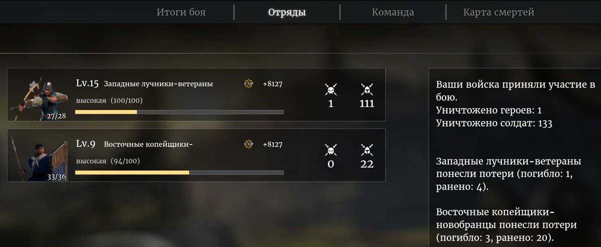 А в самом начале вы выбрали какой-то класс (рекомендую Меч, Алебарду, Глефу), и открываете первые отряды вроде лесорубов и восточных лучников-новобранцев ([U], Отряды). В данный момент с этим не нужно заморачиваться, так как вам пока нужно понять механику игры и сражений. Открытые отряды добавляются в гарнизон, нажатием знака [+]. Просто откройте 5 первых отрядов и сражайтесь в боях против ИИ и в осадах. Так вы заработаете меди, прокачаете уровень, получите новое снаряжение для героя, откроете новые классы оружия и отрядов, а самое главное наберётесь опыта. Только запомните, что в этих боях каждый тип отряда можно использовать только один раз, а подлечить их и свою лошадь можно на опорных пунктах, отмеченных крестами. Там же можно «подзаправить» лучников стрелами.