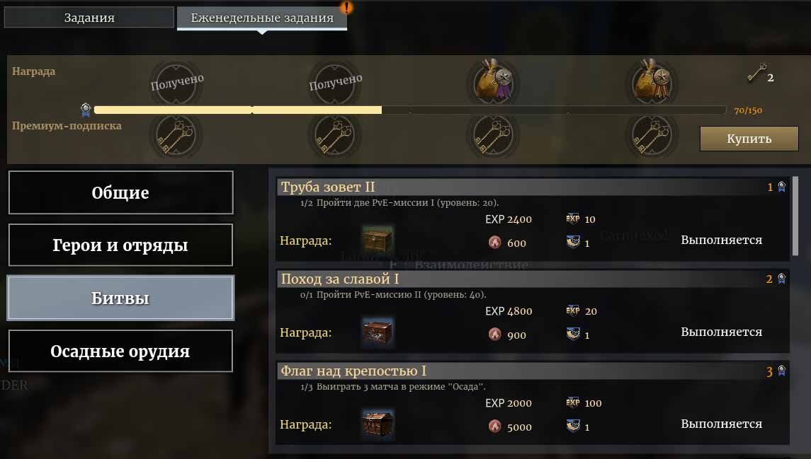 Еженедельные задания в Conqueror’s Blade