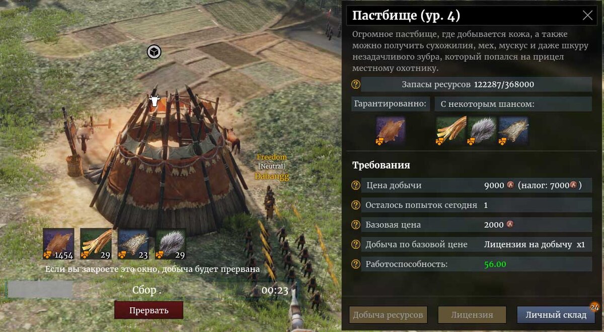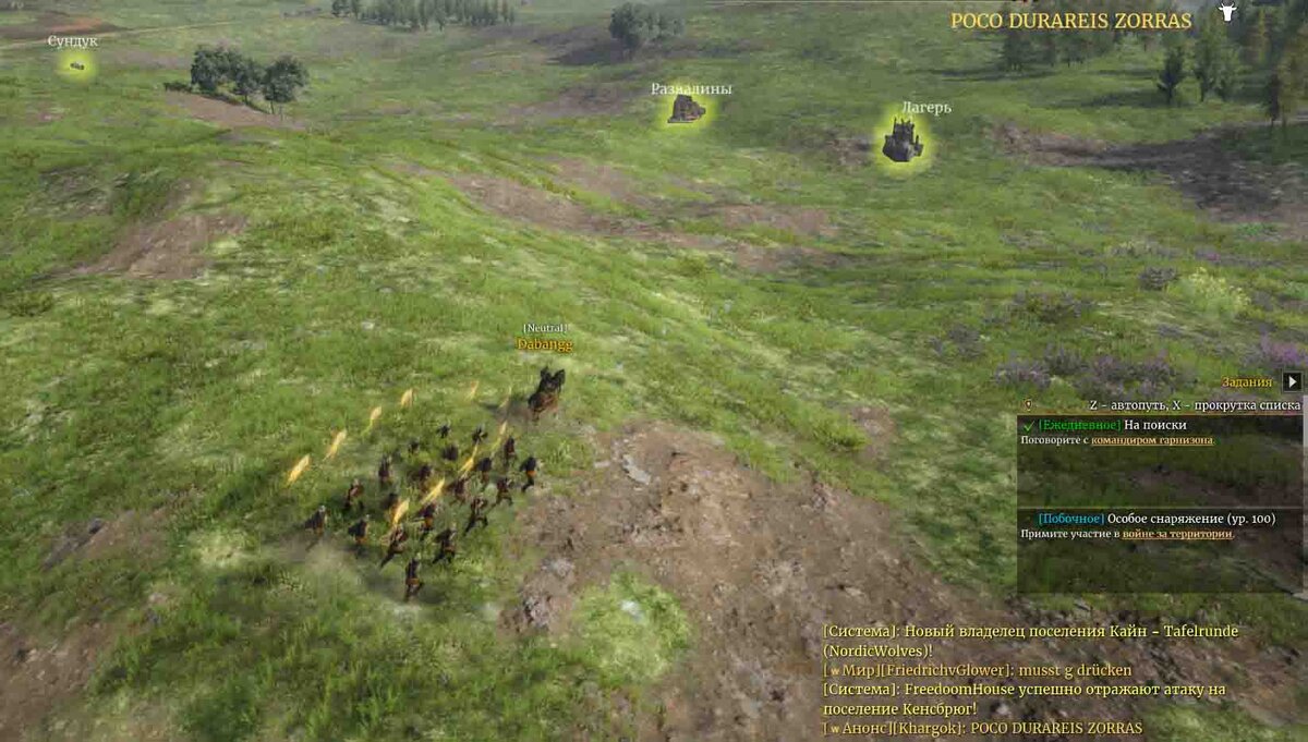 Каждый день вам доступны 4 задания от Командира гарнизона и 3 от Кастеляна (Просмотр клавишей [L]). Они делаются очень легко, и в награду за них вы получите 21000 опыта героя, 600 очков для открытия отрядов, 6300 меди и 2 лицензии на добычу (чтобы добывать ресурсы без наценки, и в запрещённых местах). Кроме того, любые задания и контракты будут прокачивать ваш дом. Чтобы выполнить PVP-задания, вам достаточно играть в боях против ИИ. Обычно это гарантированная победа, которая также приносит опыт персонажа, опыт отрядов, медь и серебро. Найти сундуки с развалинами, добыть ресурсы и уничтожить «красных» бандитов можно выйдя на глобальную карту. Чтобы добыть ресурсы, нужно подойти к ближайшему месту добычи и начать добывать, используя лицензию или заплатив полную стоимость медными монетами.