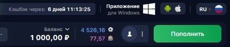 Зарегестрировался на платформе 1WIN (ТЫК) Бонусом получаете 100% от суммы пополнения.