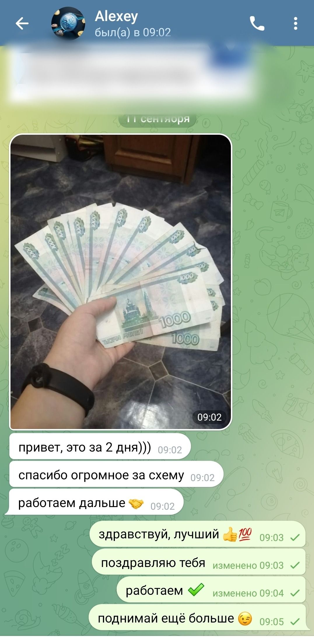 +2125 рублей. Не сильно напрягаясь))) система всё делала за меня, а я просто попивал пивко и контролировал кол-во игр и ждал тот самый маленький кэф. Очень легкая схема. Просто не страдайте херней(не жадничайте). И каждый сможет поиметь несколько тысяч в день.