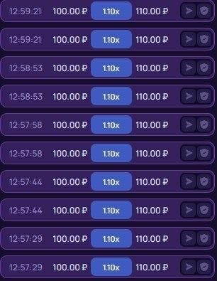 Стратегия максимально легкая и прибыльная: мы ждём, пока чел улетит на кэфе ниже 1.1(от 1 до 1.09 без) без ставки 1 раз и начинаем ставить забирая на 1.1! Каждый раунд.