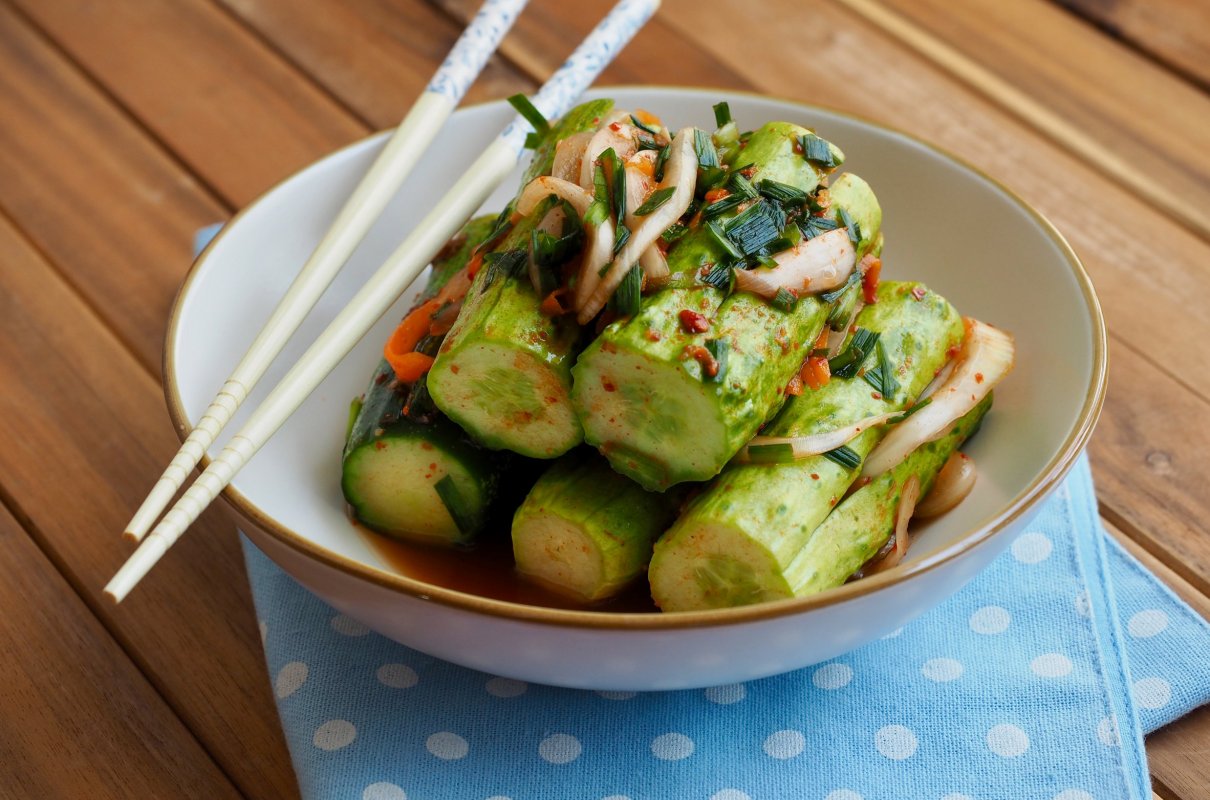 Как есть китайский огурец