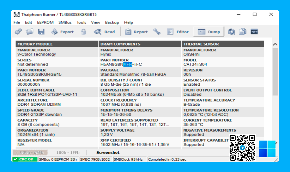 В первую очередь нужно указать точные данные установленных модулей памяти. Пользователь выбирает настройки, соответствующие его системе. Давайте воспользуемся утилитой Thaiphoon Burner для просмотра характеристик модулей. Хотя её функциональность значительно шире.