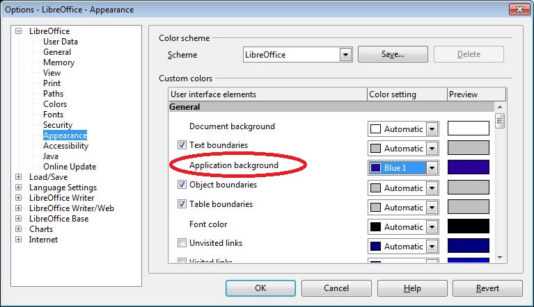 Как изменить цвет libreoffice