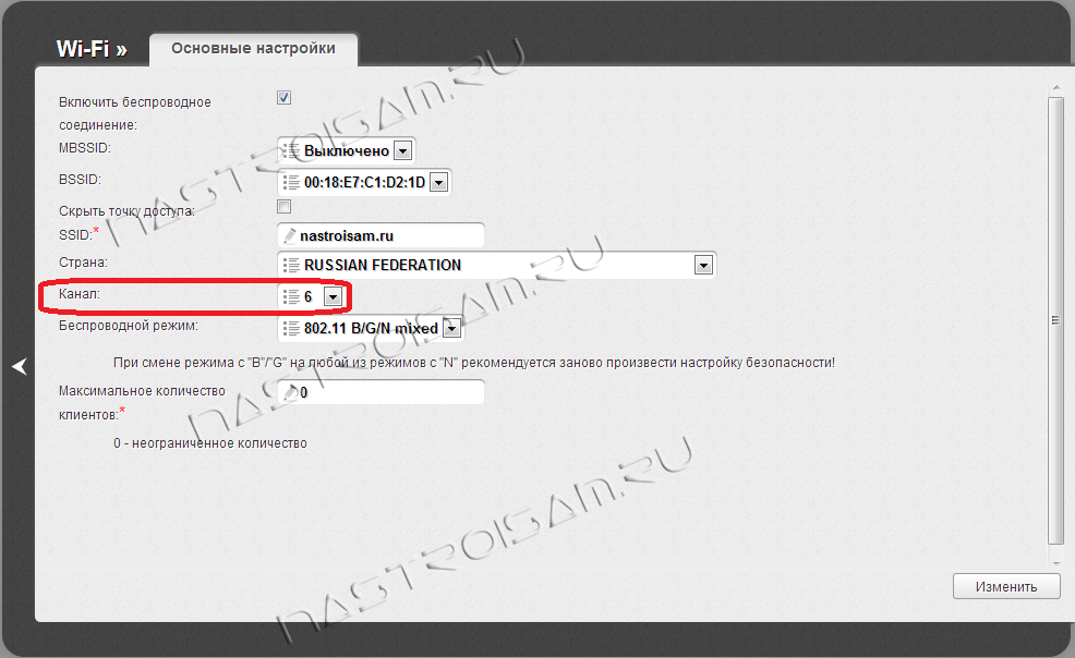 Как изменить канал wifi