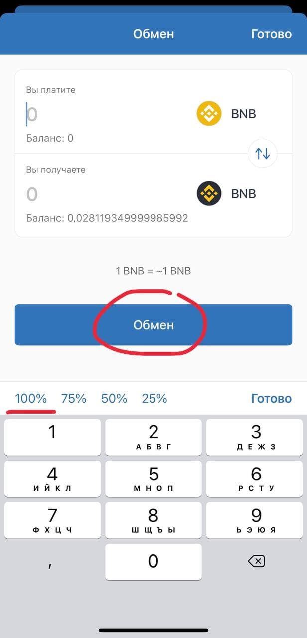 Если вы перевели в обычных BNB вам необходимо перевести их в Smart Cain для этого нажмите на BNB 👇