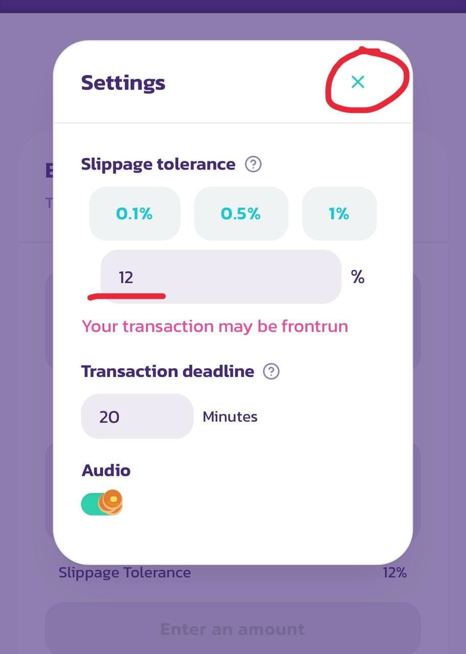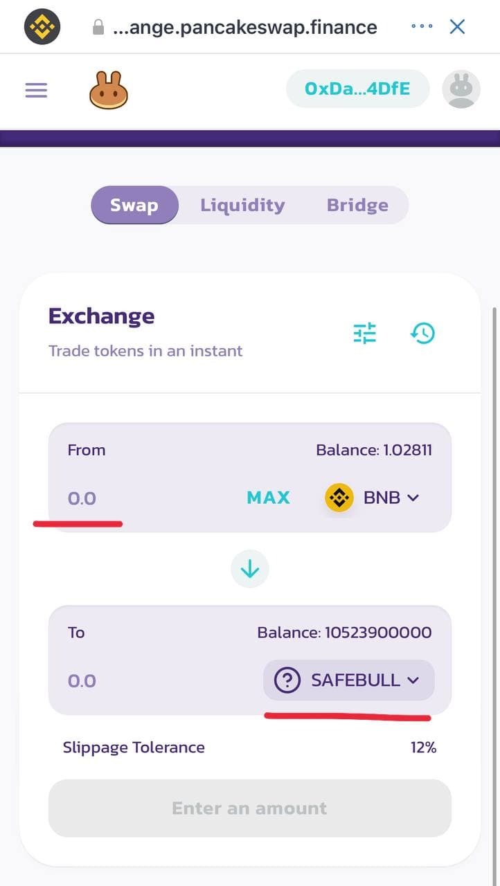 Проверьте все пункты с верху в низ и введите нужную сумму в BNB.