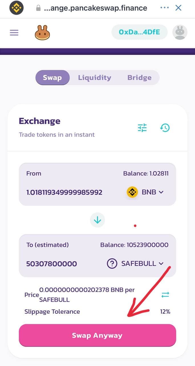 Вы увидите сколько монет вы купите и нажмите SWAP