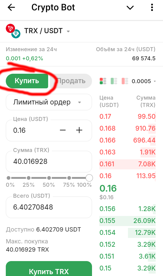 Как купить TRX для покупки токена через CryptoBot
