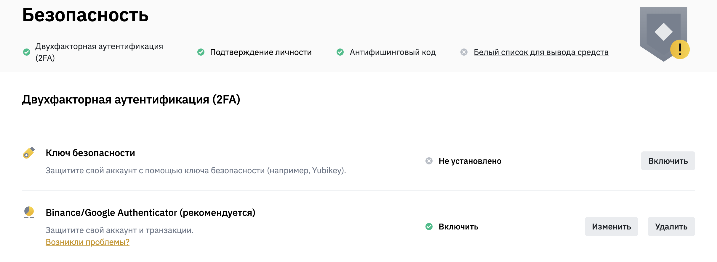 Вы успешно подключили Binance Authenticator или Google Authenticator и обезопасили аккаунт.