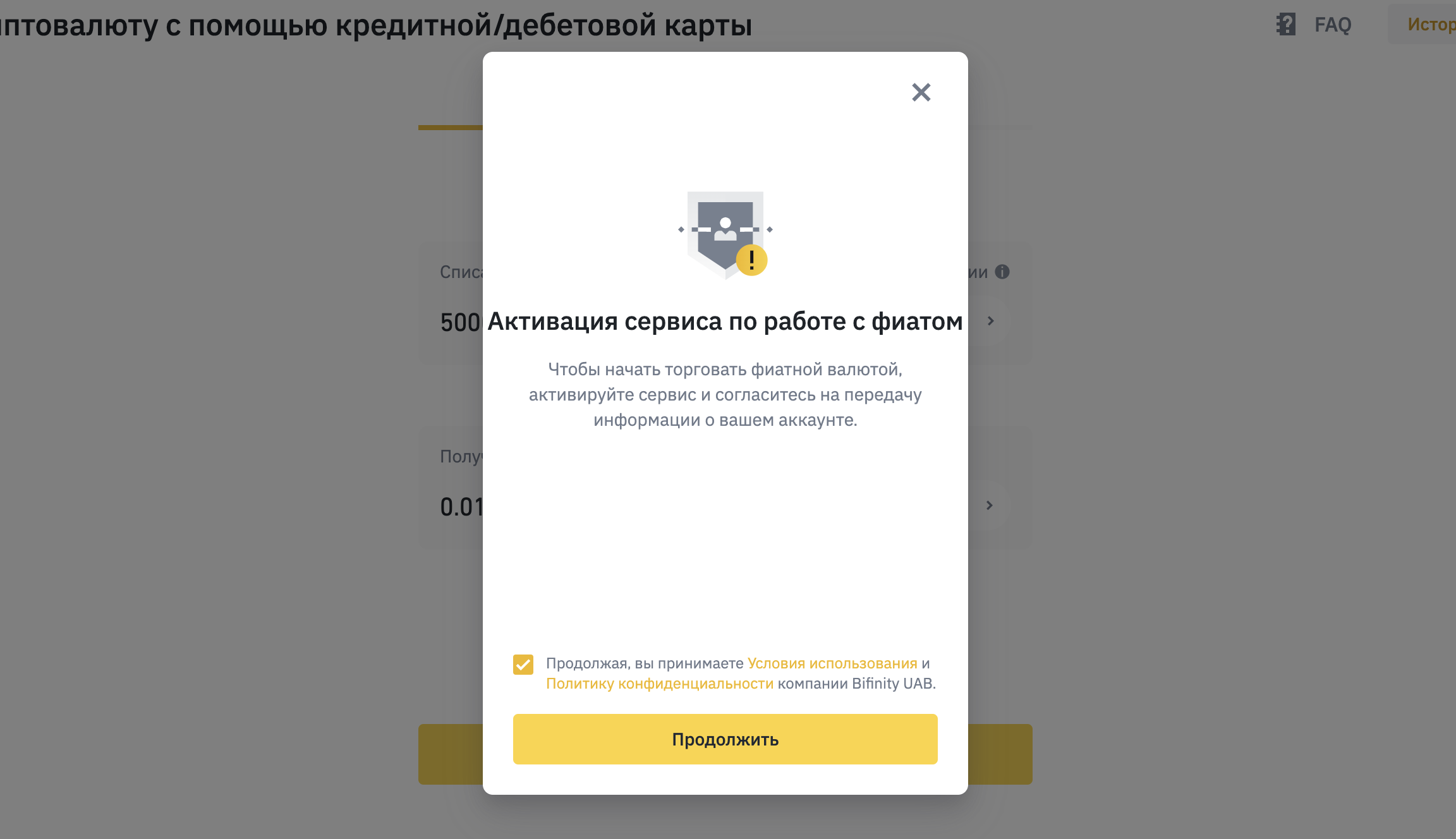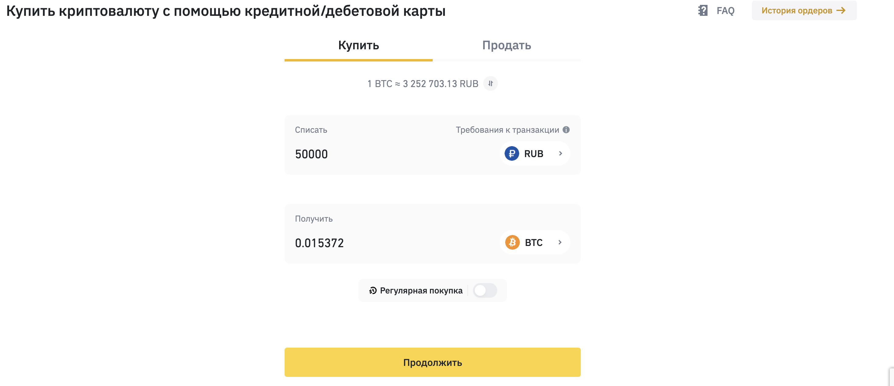 Покупка криптовалюты через функцию «Кредитная / дебетовая карта»