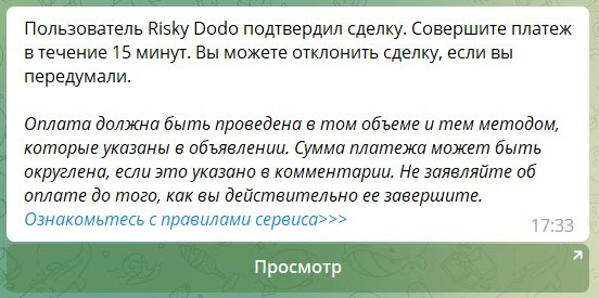 И ещё. Если вы не нажмёте кнопку "создать сделку", то ваш запрос на покупку по этому объявлению завершиться через 3 минуты и вы сможете создать новый запрос по этому же объявлению.