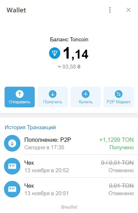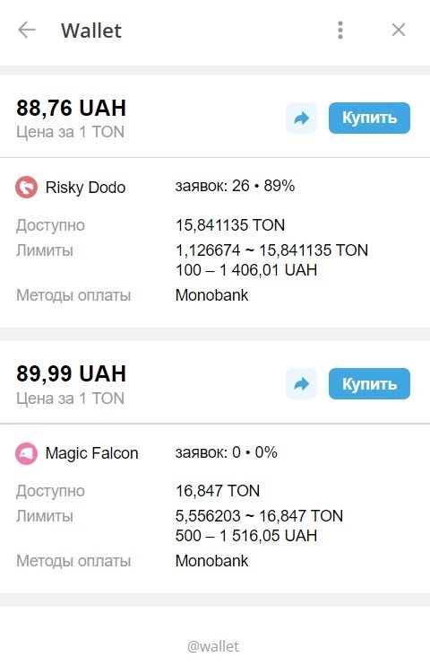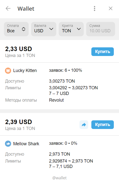 Как купить криптовалюту TON в telegram-боте @wallet