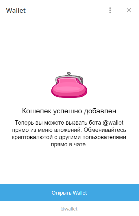 10. Примерно через минуту в бот @wallet придет сообщение: