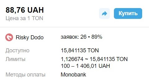 - "Доступно 15,841135 TON" - это максимальное количество монет, которое продавец готов вам продать по этой заявке.