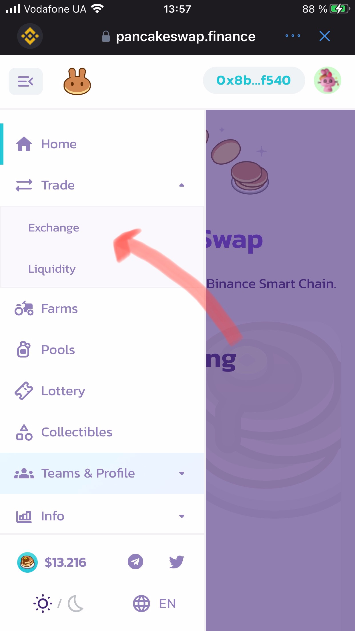 Далее заходим на панкейк во вкладку ликвидности