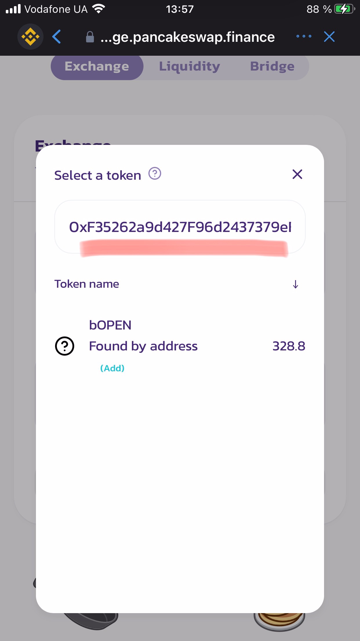 Далее вставляем в строчку поиска этот адрес, после чего нам добавит нужный токен.