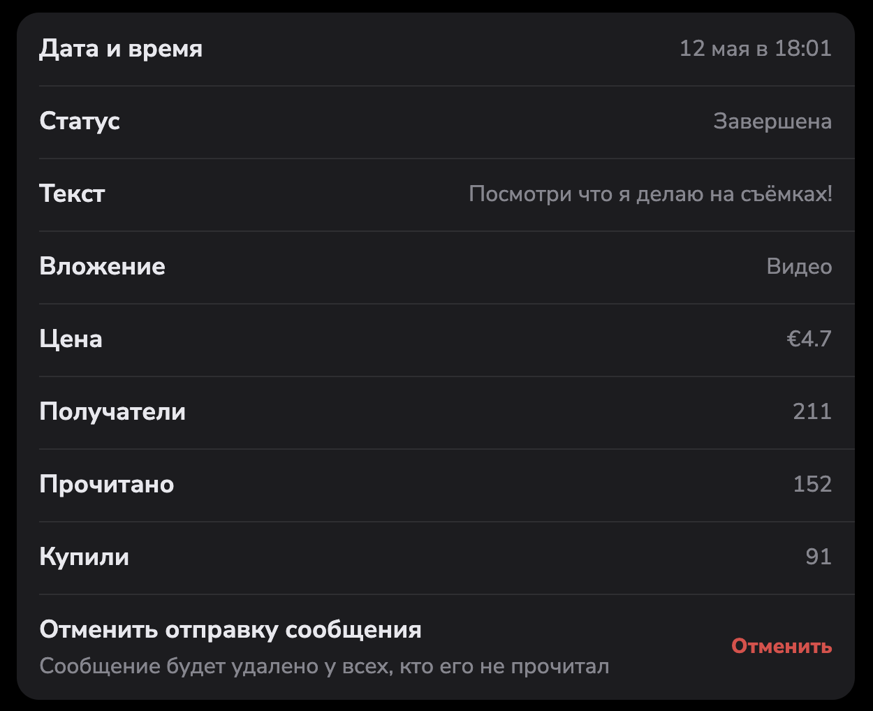 При этом, конверсия покупки недорогого контента через DM — 61%. Именно столько мемберов открыло приветственное сообщение.