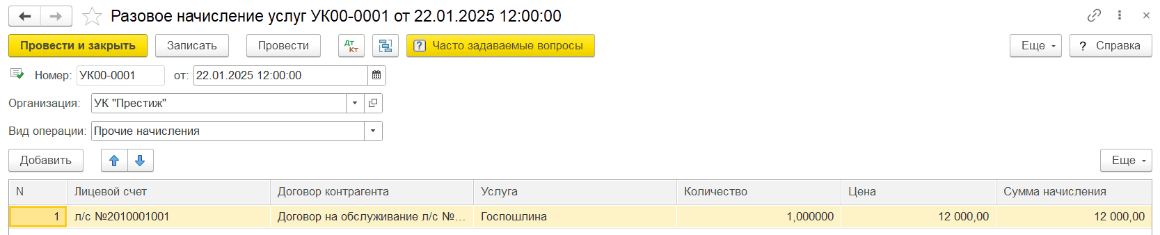 Как начислить услуги в 1с
