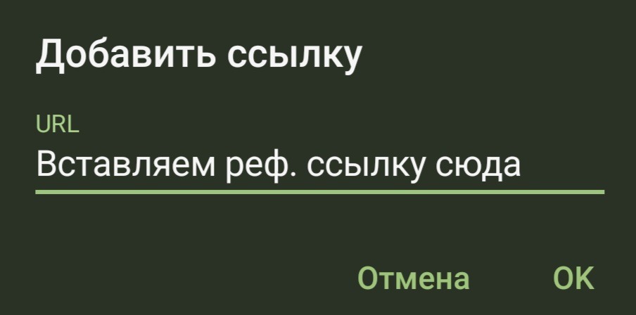 Добавляете сюда вашу реферальную ссылку. Дальше нажмите ОК.