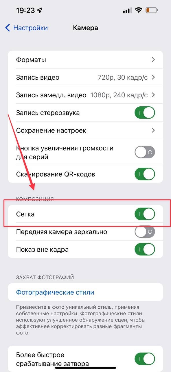 Как настроить сетку на iOSЕсли вы пользуетесь iPhone, то все просто:Зайдите в «Настройки» и выберите пункт «Камера»2. После этого выставьте активным ползунок «Сетка»