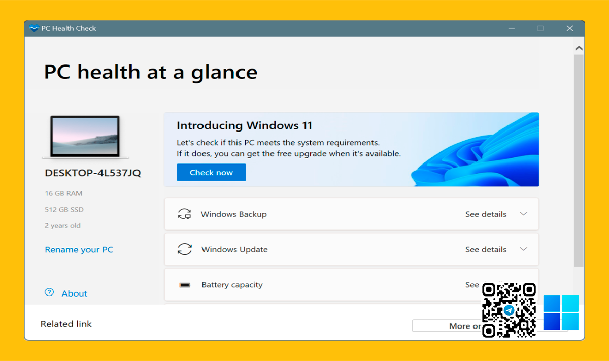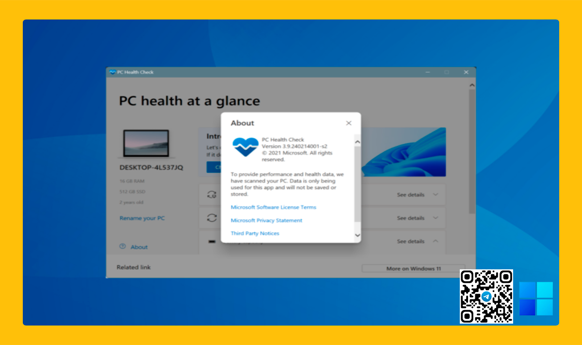 Для тех, кто беспокоится, подтверждаем: приложение PC Health Check безопасно, что было подтверждено нашими экспертами в детальном анализе.