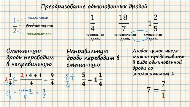 Как обратить смешанную дробь в обыкновенную дробь