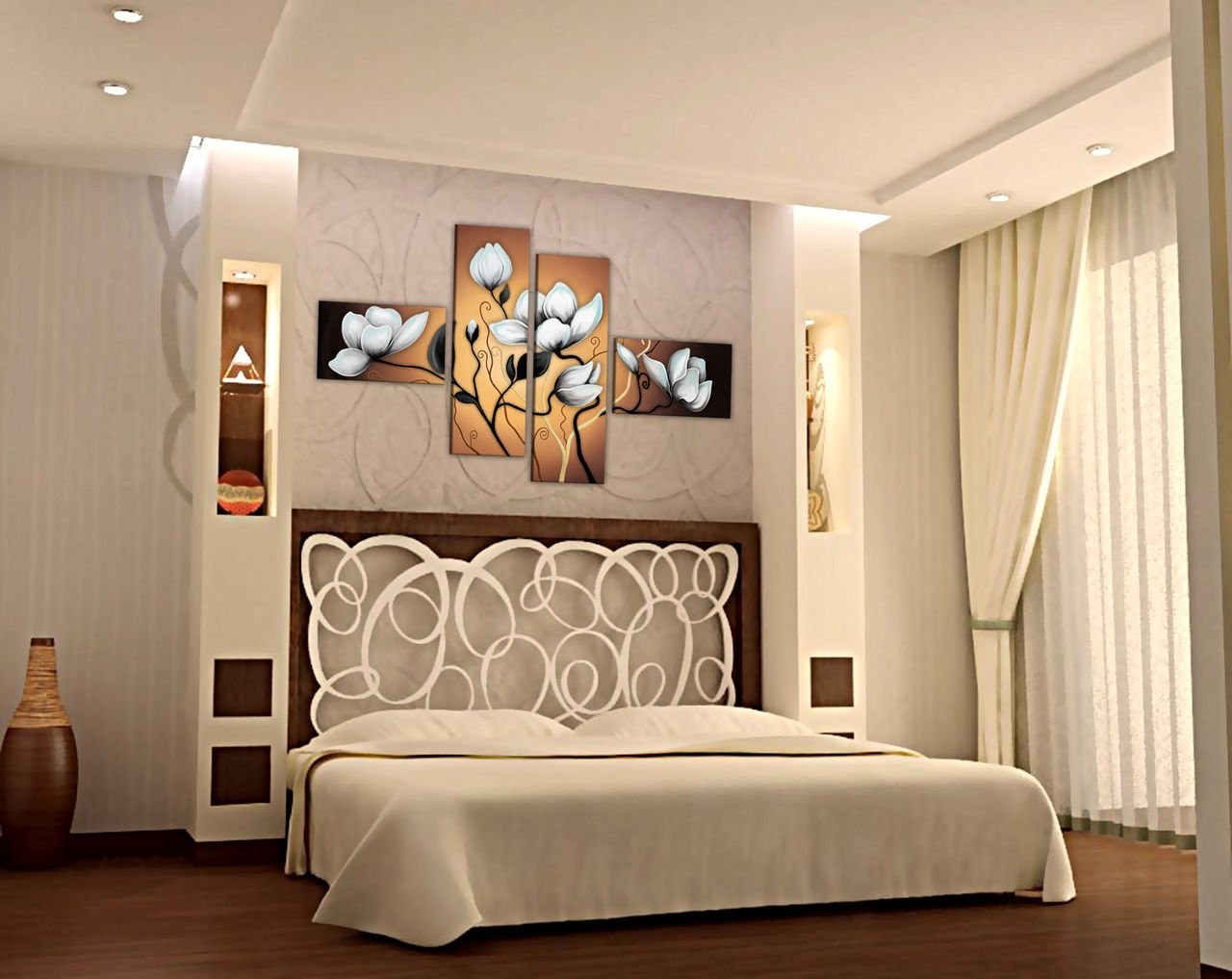 Как обыграть стену в спальне 147 фото