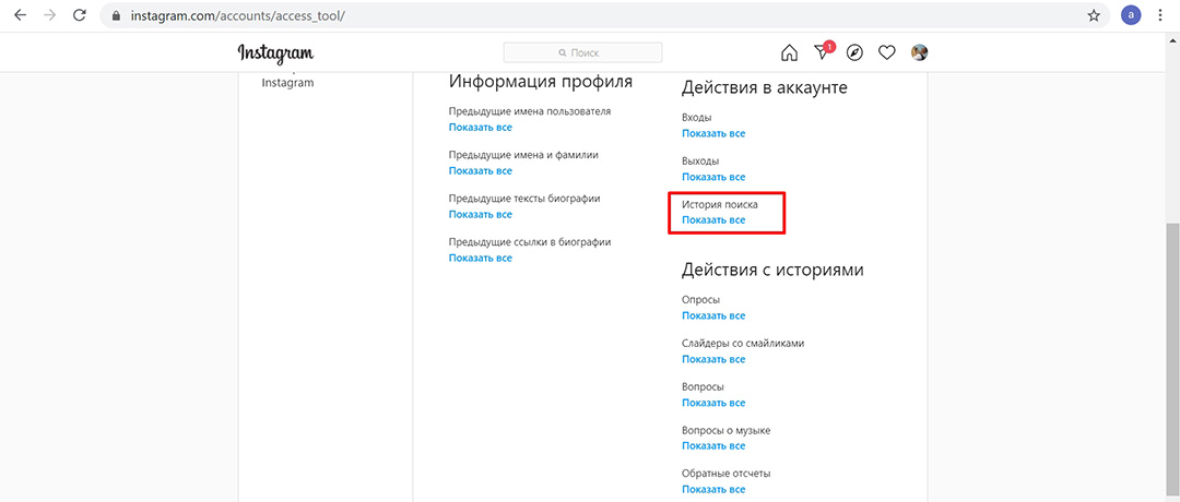 Как очистить поиск в инстаграм