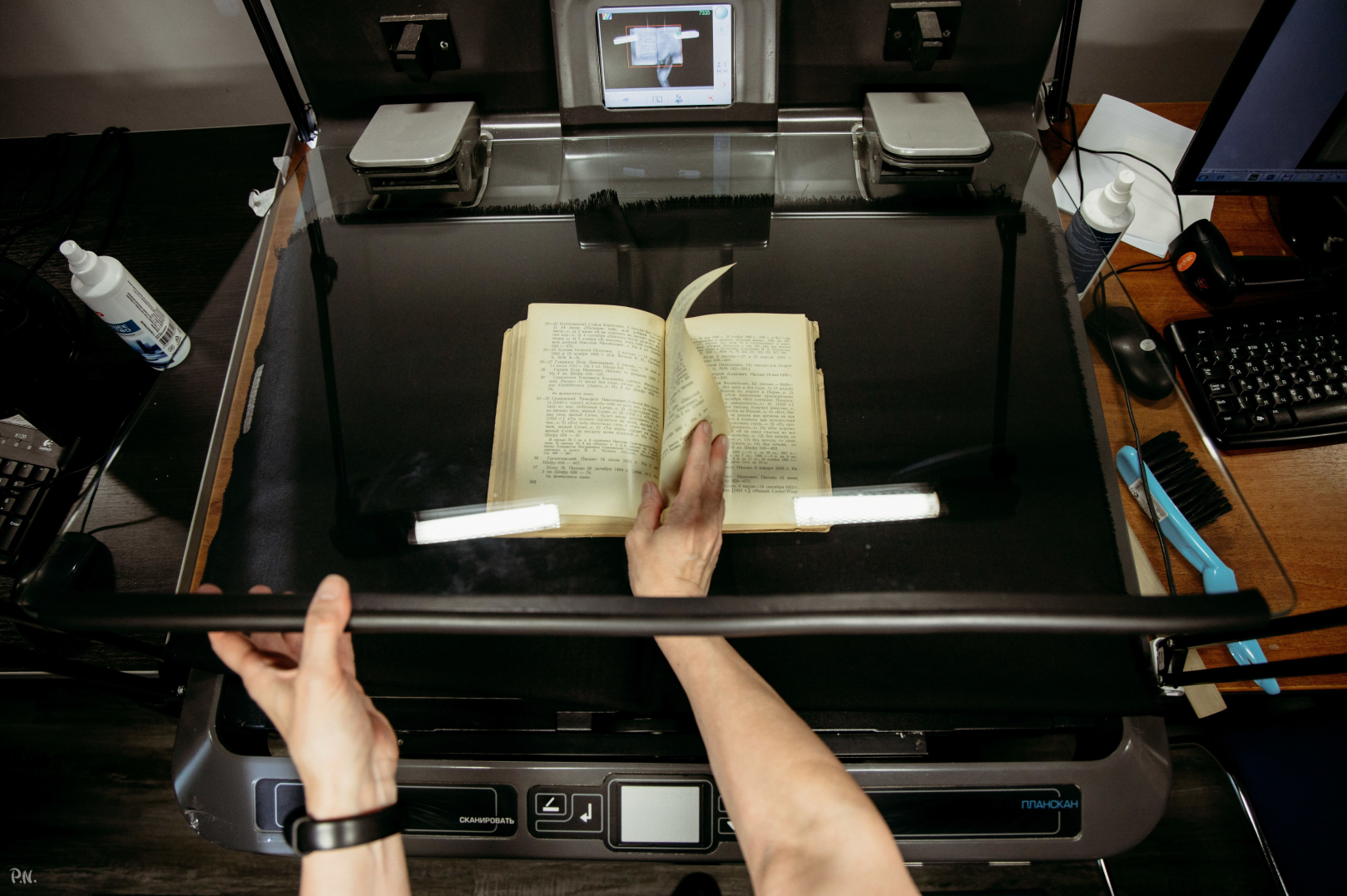 Пять сканеров и специалисты по оцифровке начинают работу. Видео об этом есть в инстаграме библиотек Петербурга.