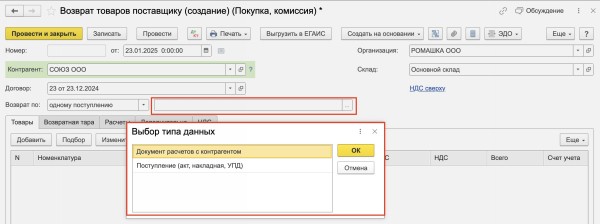 Как оформить возврат денег в 1с