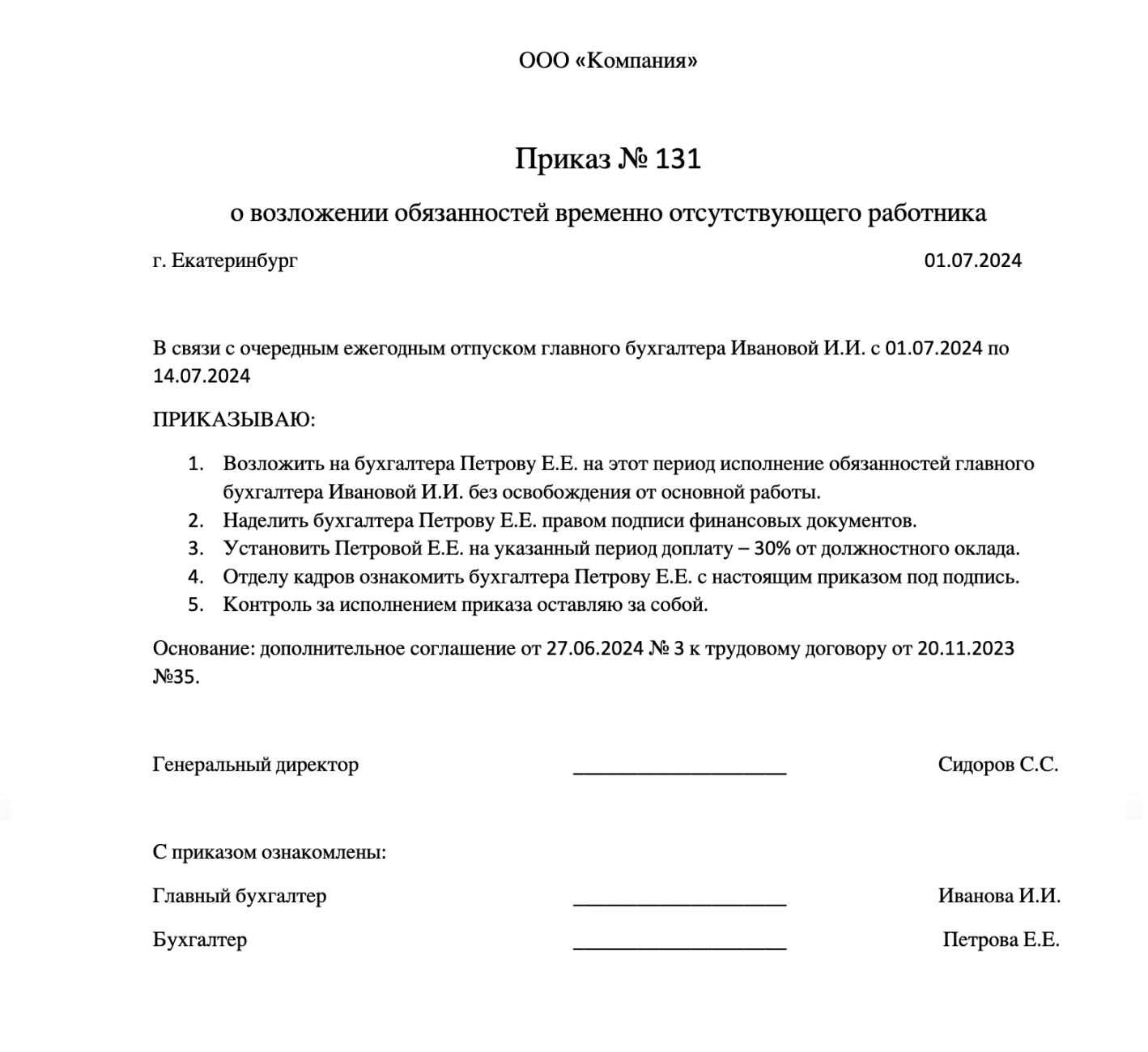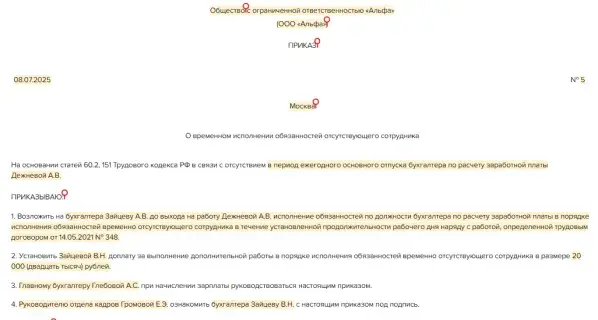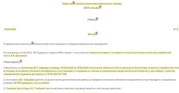 Как оформить временное исполнение обязанностей