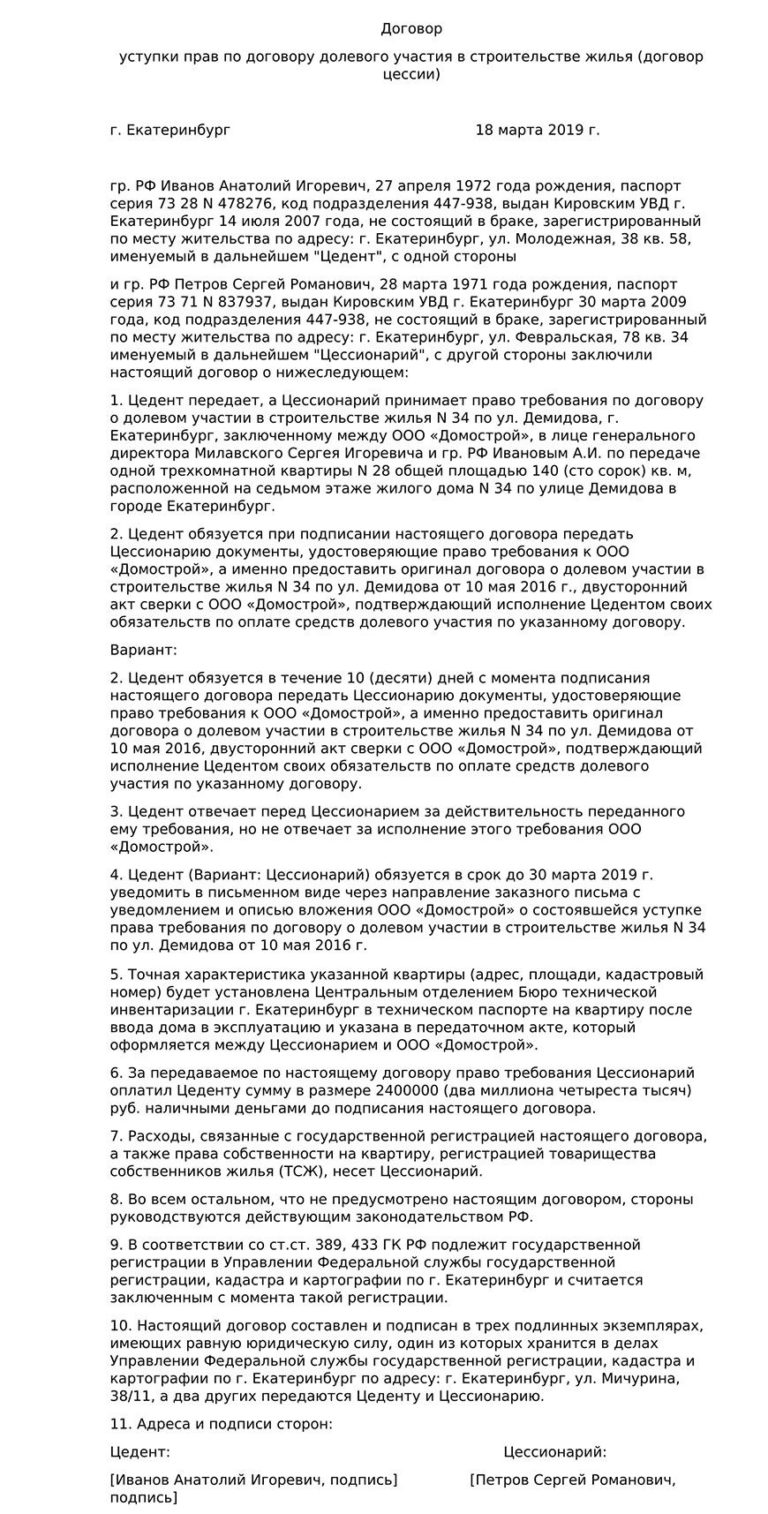 Как оформляется переуступка