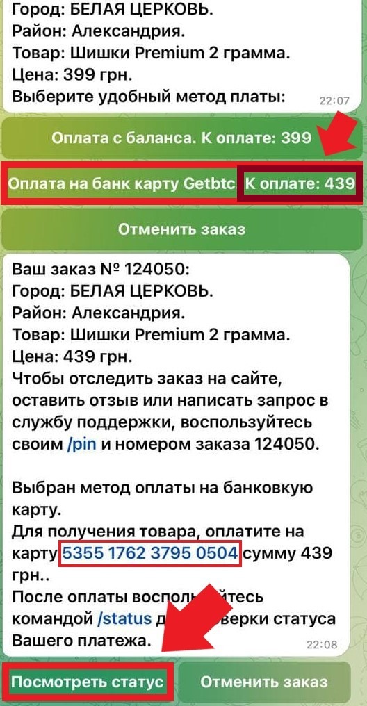1) После выбора товара и района выбираем ''Оплата на карту GetBTC''