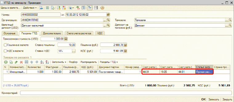 Как оприходовать импорт