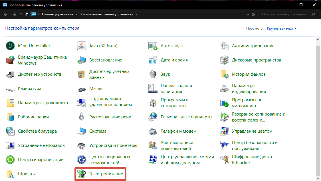 Управление настройками электропитания
