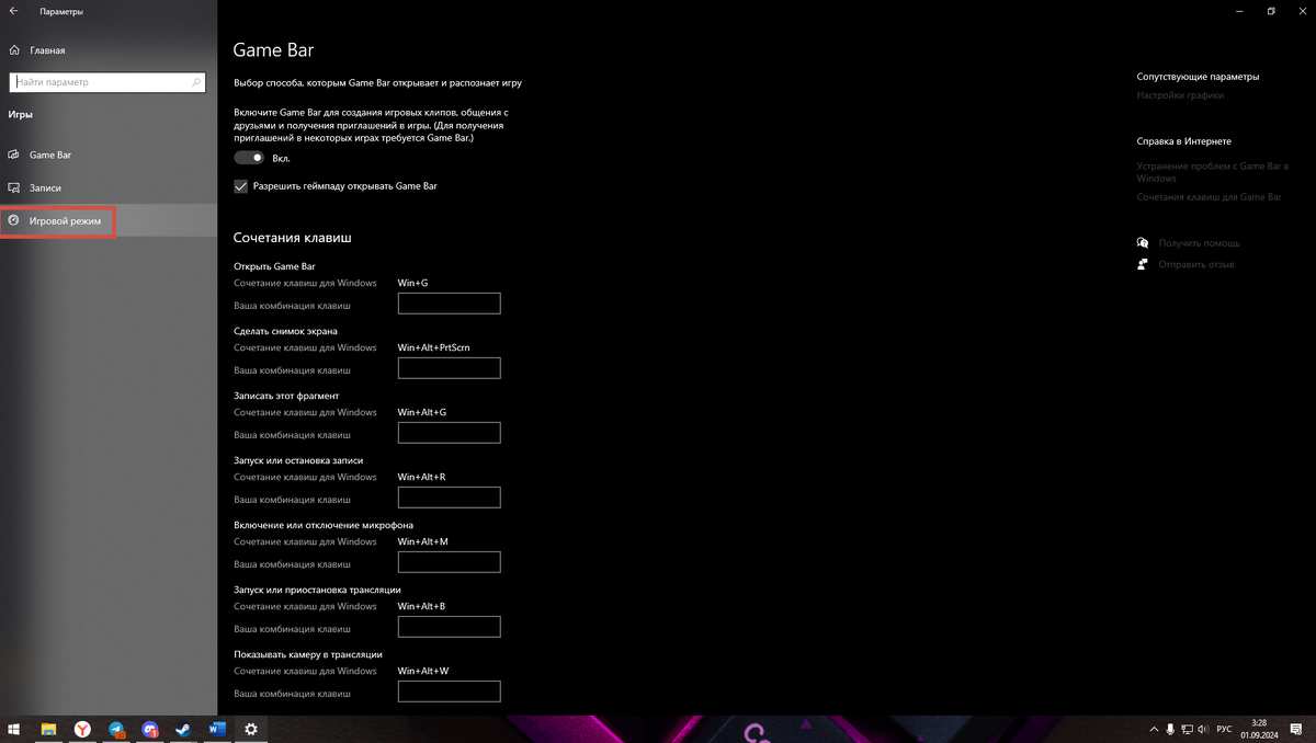 - Включение игрового режима: перейдите в «Параметры» -> «Игры» -> «Игровой режим» и убедитесь, что он включен.
