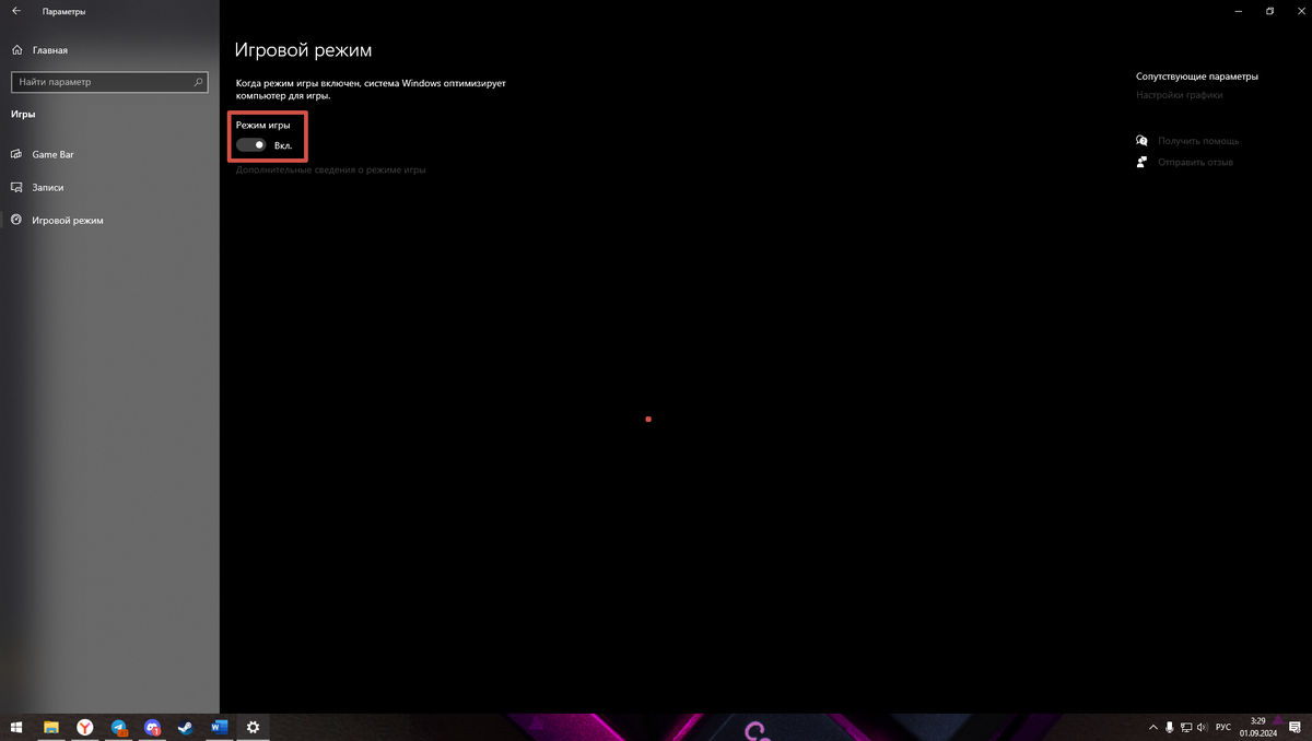 В Windows 10/11 есть встроенный игровой режим, который можно активировать, чтобы улучшить производительность ваших игр.