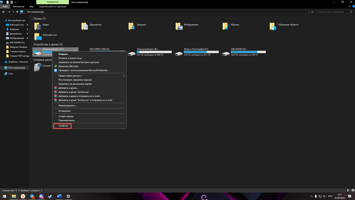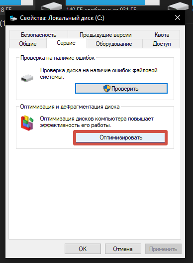 - Дефрагментация и оптимизация HDD: для пользователей традиционных жестких дисков (HDD) рекомендуется периодическая дефрагментация. Это можно сделать через встроенные инструменты Windows («Свойства» раздела -> «Сервис» -> «Оптимизировать»).