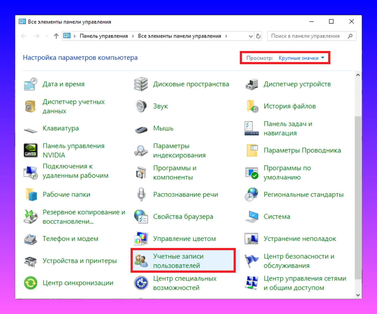 Для деактивации контроля учётных записей в Windows 10: