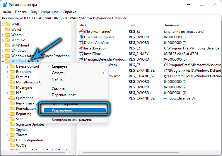 Как отключить защитник через реестр