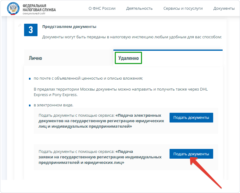 Шаг 4. Выберите удалённую подачу документов.