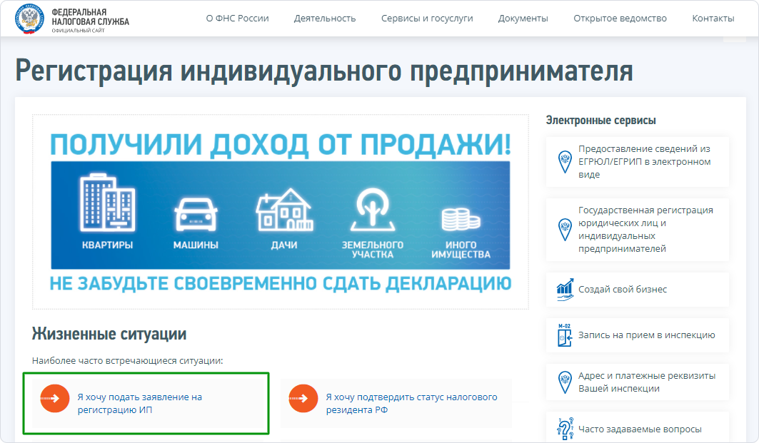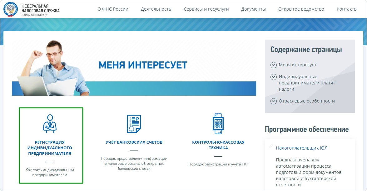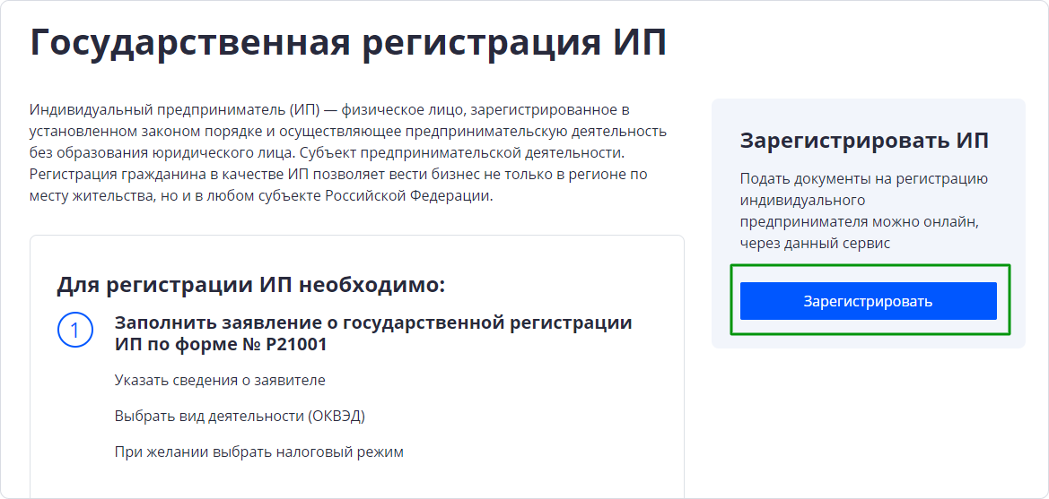 Шаг 2. Перейдите на страницу регистрации ИП.