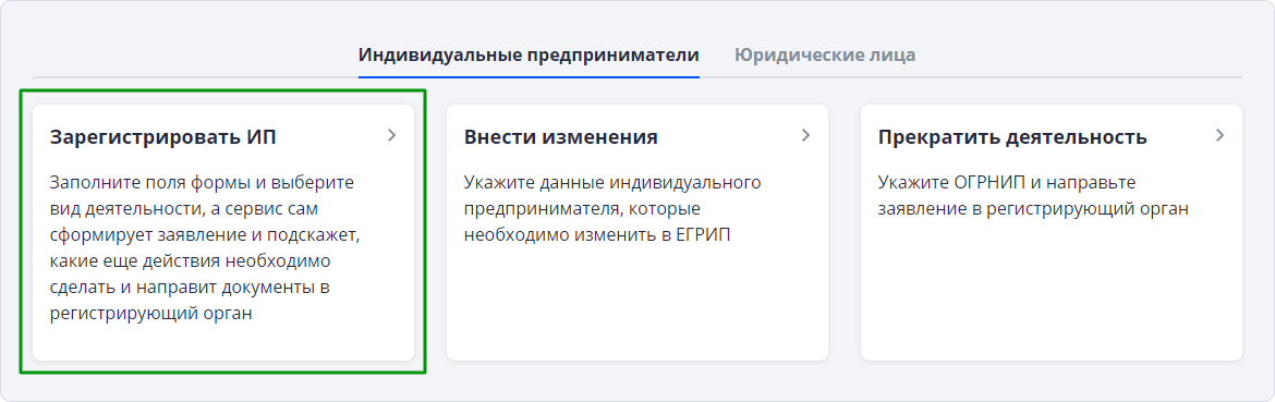 Шаг 5. Перейдите в блок «Зарегистрировать ИП».