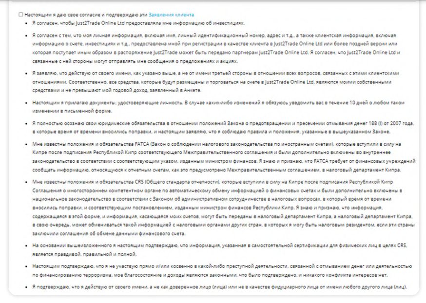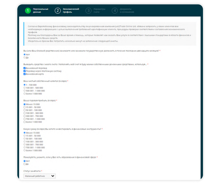 Как открыть счет в Just2Trade
