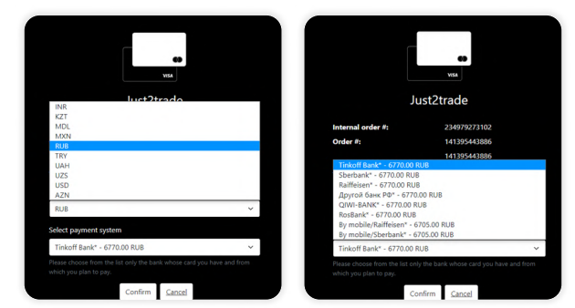 Важно! Если вы совершили платеж после отведенного на это время, сообщите об этом в службу поддержки 24_support@just2trade.online и направьте чек об оплате В этом случае случае зачисление средств может занимать до нескольких дней..