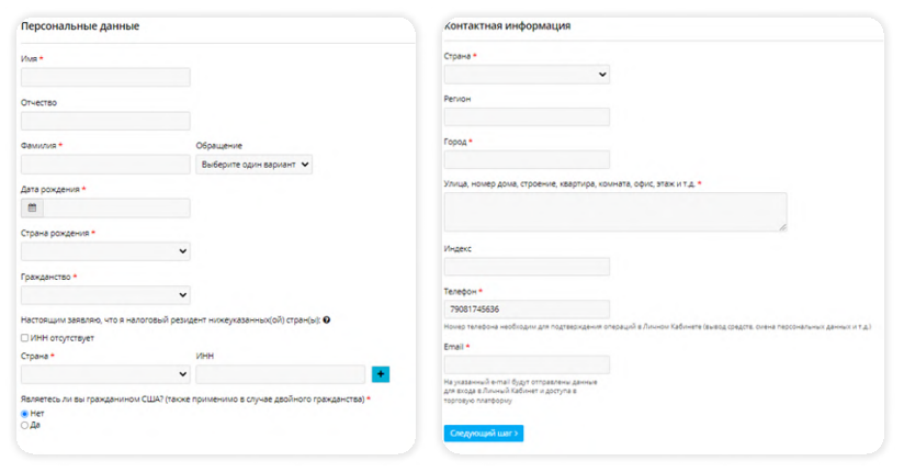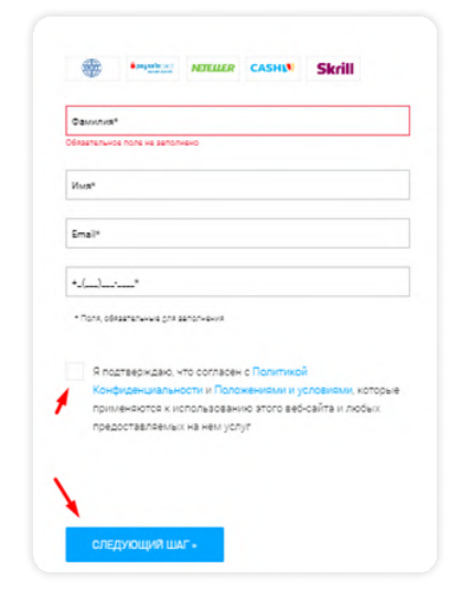 1. Заполняем данные, подтверждаем согласие, нажимаем на следующий шаг