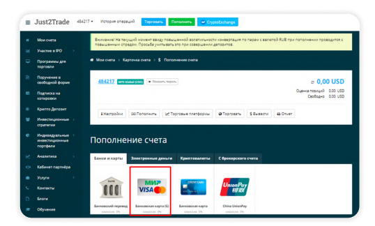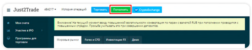 Как пополнить счет в Just2Trade